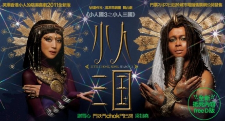 全新創作的第3集《小人國 3之小人三國》將於4月8日起在葵青劇院爆笑公演!繼續由《小人國》(第一及第二集) 及《戀愛總是平靜地意外身亡》的黃智龍編導,更特別邀請”太后級”演員謝雪心強勢加盟,當然還有三位台柱:風車草劇團的梁祖堯、湯駿業及邵美君,以及白只(凌智豪)、黃呈欣、鄧智堅及歐珮瑩等8位出色演員,再以嬉笑怒罵的喜劇手法,數臭「梗有一個喺你左近」的香港小人