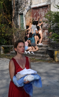 編舞出色,Nina Dipla的演出亦非常耀眼。她一舉手一投足都充滿力量,甚至連指尖的舞動也帶著張力,無論是在群舞之中抑或擔當輔助角色,都鋒芒畢露得令人無法忽略她的存在;就連捧著圍巾站在路邊,完全靜止地看著觀眾隨其他舞者走向村裡,她深邃的眼神也蘊含著慈悲和哀傷,彷彿洞察苦路上的一切,而把你的心緊緊攫住。可惜澳門舞者只有郭瑞萍和謝嘉豪表現較理想,其他年輕舞者大多形體僵硬,似是未能掌握如此龐大的題目,以致努力追求動作達標,背後卻欠缺感情支撐,有很大進步空間。