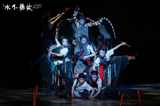 《水不揚波》是講述在某個年代居住在內陸北方的鄉民,因戰亂天災,迫使歷代「流人」南遷。故事創作的背景引述「潮汕鄉賢,帶著團結族人的英歌,落戶香江。」當年有大批潮籍移民於戰後來港定居,英歌就是在此時傳入香港。英歌舞團員會扮演《水滸傳》中的不同角色,而此舞劇在創作的細節上加入了英歌隊員在角色中的一些特色。英歌隊的頭槌扮作秦明或關勝,二槌扮李逵,三槌扮魯智,四槌扮武松。此舞劇的序幕上,英歌四頭槌畫臉掛鬚,是為了隱藏身份,帶領族人南遷。劇中主角潮兒(陳映熹 飾),在第一幕以玄武靈蛇探路的一段舞,就是融合了英歌隊伍結構和角色上的元素,英歌的前導者扮演時遷,負責舞蛇。英歌隊的總指揮,是司鼓者宋江,而劇中南遷族人的頭領,是潮兒的父親流遷(楊浩 飾)。