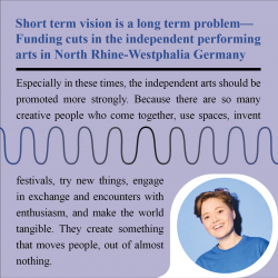 As I just wanted to submit this essay, news came in this morning. The ministry announced, that they will top up the budget for the arts for 2026. They said, the ministry found opportunities to make an increase of 8 million euros possible for next year. It shows that our fight was necessary and all the hard work of the last months pays off. We managed to be loud enough to draw attention to our claims. The next weeks will show how the increase in the budget will be distributed. It remains exciting.