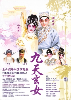 今年怡情雅敘粵劇社(下稱怡情雅敘)在澳門演出《九天玄女》,導演鄧奕生不想稍有差池,敬郎的畫室只用一桌一椅代表,置於舞台右方,霜嬋的閨房也只是舞台左方的一桌兩椅,縱有低欄阻擋,相隔只是毫釐,黃梅芬的霜嬋舒玉手籠翠袖,一串荔枝只能登陸對樓地板。回頭看2017年水月戲臺演出同一劇目,霜嬋的閨房豪華有如亭台樓閣,敬郎的畫室卻寒酸得只剩洞窯外一張石桌,閨房稍高,中間隔着一道橋,交待河的存在,拋送難度也高,再經太監窺伺挫銳氣,鳳芊芊的霜嬋把荔枝擲過案頭,最終滑落地板。2023年金玉堂劇團(下稱金玉堂)的「投荔」佈景與水月戲臺相似,只是畫桌朝向觀眾,更減少擲中的機會,王潔清的霜嬋試投荔兩次,初時誤落橋底,再擲較大的一串,還是誤中副車掉落樓頭。不能不提今年八月的喜天成粵劇團,是藍天佑鄭雅琪的夫妻檔,「投荔」一場接近金玉堂佈景,背後倒有行人熙來攘往,鄭雅琪的霜嬋不止做手好,更有體育精神,兩次失手,並不就這樣交差,再接再厲來第三次,荔枝順利降落案頭,成全唱詞裏「擲過案頭供奉」的要求,贏得觀眾掌聲。