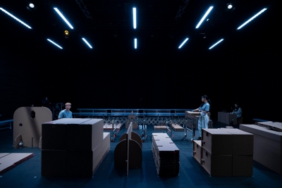 晚上的演出中,四位舞者變成了包裝工場的工人