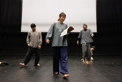 有關文字的,也有曾詠暉細究廣東話的指令跟即興舞者身體質感的關係的作品《Doing lor!》。它由一個「郁」字開始,「郁緊」、「好hea咁係郁和唔郁之間」、「好full 咁做一個啱啱想郁又未郁的動作」等等去展演文字和動作之間微妙又含混的關係。