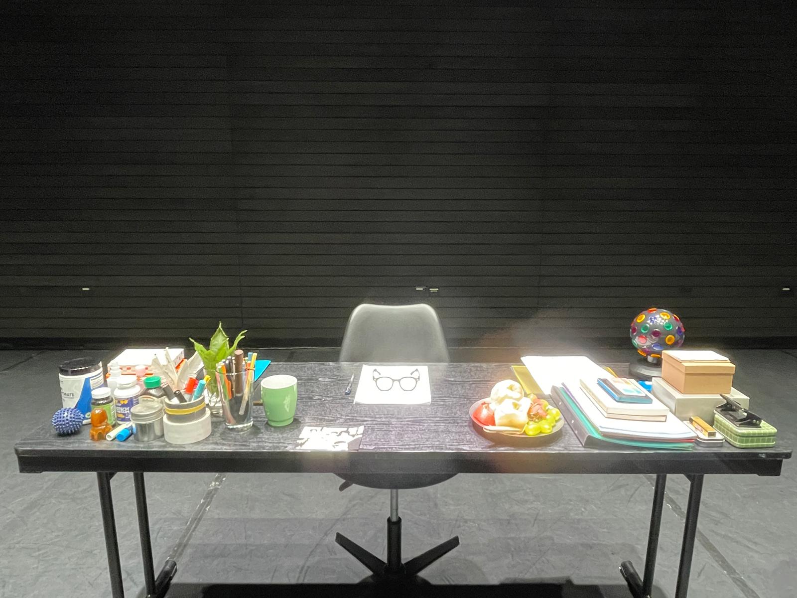 散場後,筆者聽到有人細聲聊天:「阿Dick真係好處女座!」(是的,你要知道處女座都是細節控呢!) 黃大徽精準拿捏每個事段的內容與節奏,「削蘋果」這動作是個Cue,為每段開始和蘊釀情緒。他一臉正經的唸著,用著最簡單的日常用語,語句和詞彙中的緩急輕重,句子與句子間的停頓位,每段演讀後的肢體動作示範,就連書桌上的物件(按摩球、維他命丸、Disco七彩小夜燈) 都盡見心思,每個細節組合牽動著我們情緒進入他的世界。