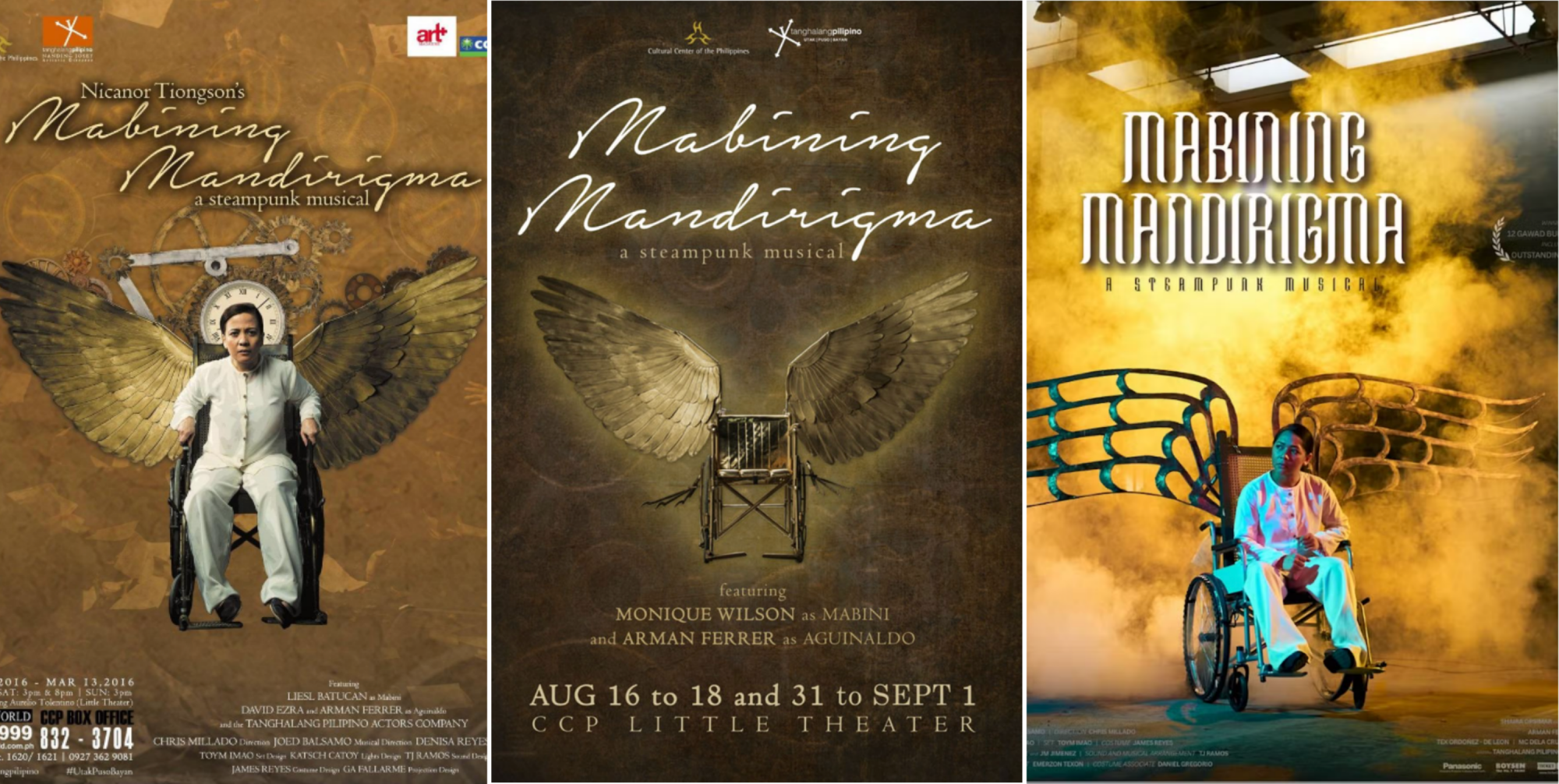 Mabining Mandirigma (Tanghalang Pilipino) was first staged in 2015, re-run in 2016, again staged in 2019, and again in 2026. Tanghalang Pilipino is the resident drama company of the Cultural Center of the Philippines, a government-funded institution.
