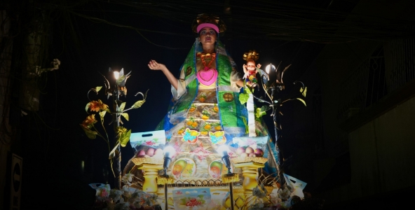 Foreign funding as a mode of production — the urgent need to unpack the foreign appetite for and colonial framing of the local as exotic, and how that feeds into (or eats up) local creativities. Image from Ea Torrado’s “Brown Madonna” project for Goethe Institut’s Performance Ecologies. Photo from the Goethe-Institut Philippinen Facebook Page, publicly available, posted on February 28, 2026.