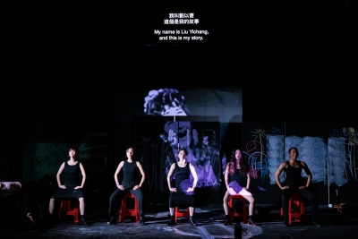 這種角色扁平化大概是編導有意為之。在開首與結尾,五位女演員一字排開,宣告「我係劉以鬯,呢個係我嘅故事」,暗示著劇中人物或多或少都代表著作者的精神面貌。金錢至上、艱苦謀生、熱愛藝術、消沉失意、順應欲望、針砭世態,縱使角色只有單一面向,但只要拼湊起來便呈現了人的複雜心態。不過酒徒身邊的女性仍較小說立體,尤其是楊露一角,並不全然是酒徒的慾望對象,黃呈欣把握到劇場的空間,既展現了楊露的媚態,亦輕輕點出對家人的關懷,又有斬斷情絲的冷酷撇脫,具體表現出楊露這個舞女有血有肉的輪廓。