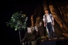 劇中多次出現的蘋果,有牛頓的蘋果、有反地心吸力的蘋果,還有魔幻的蘋果雨。憤青是鄧寬,很清楚,但如何解釋「抵抗自然定律,堅拒歷史重演」?自然定律是否指向社會主流的價值觀?堅拒甚麼歷史的重演?是堅拒填鴨式的教育制度還是在港式教育下受壓迫的學生?蘋果作為劇中的象徵物,編劇賦予特別的涵意,實在有太多的自行聯想。蘋果有慾望、誘惑、甘甜的象徵意味。對於有宗教信仰的朋友來說,蘋果是令阿當和夏娃產生貪嗔痴愛恨惡憎的「元凶」,也就是說從咬第一口那天開始,人類便染上人世間的醜陋惡習。牛頓在蘋果樹下被砸而發現了地心吸力,可劇中的蘋果卻反自然定律向上彈,編劇是否在說明有些事縱然是定律,但是仍會有例外的機率存在;世界上唯一不變的事就是「變」的本身,生命就是一直在改變、進化、循環不息地進行生死交替?這樣的解釋,或許可套用在舞台設計上。