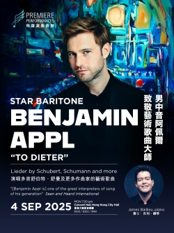男中音Benjamin Appl繼2018年後,再度受飛躍演奏香港邀請,來港演出。根據飛躍演奏香港的創辦人Andrea Fessler,原來他本應在2021年回來,但由於疫情,表演延期,結果一延便是四年。