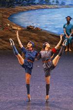 而隨後選自《梁祝》的《化蝶》雙人舞,舞蹈編排上甚為優美,兩名舞者技巧雖然扎實,可是這支表達二人化蝶飛天的舞段,跳來就有欠輕盈,整體不夠圓潤利落,實在可惜。不過,為此一部分壓軸的《紅色娘子軍》第二場,就叫人眼前一亮,不愧為鎮團之寶之一。