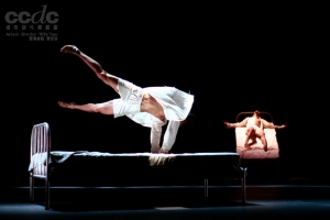 Discords that sounded like a piano with cracked soundboard and a double-bass with broken strings, glaring side lights that illuminated dancers’ shaking hands and twisted faces, floppy black suits and bowler hats that concealed their identities and emotions, a dangling ceiling that mis-aligned with the stage… From music and lighting, to costumes and sets, The Comedy of K exemplified a dark, sneering satire. “City Contemporary Dance Company” re-staged Helen Lai’s dance theater on December 8, 2012 at Kwai Tsing Theater (premiere in 2004).